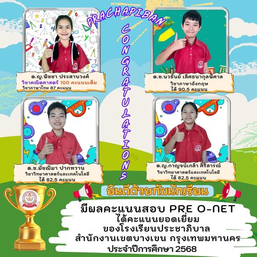 ขอแสดงความยินดีและภาคภูมิใจกับความสำเร็จของนักเรียนที่สอบ Pre O-NET ได้คะแนนยอดเยี่ยม ปีการศึกษา 2568