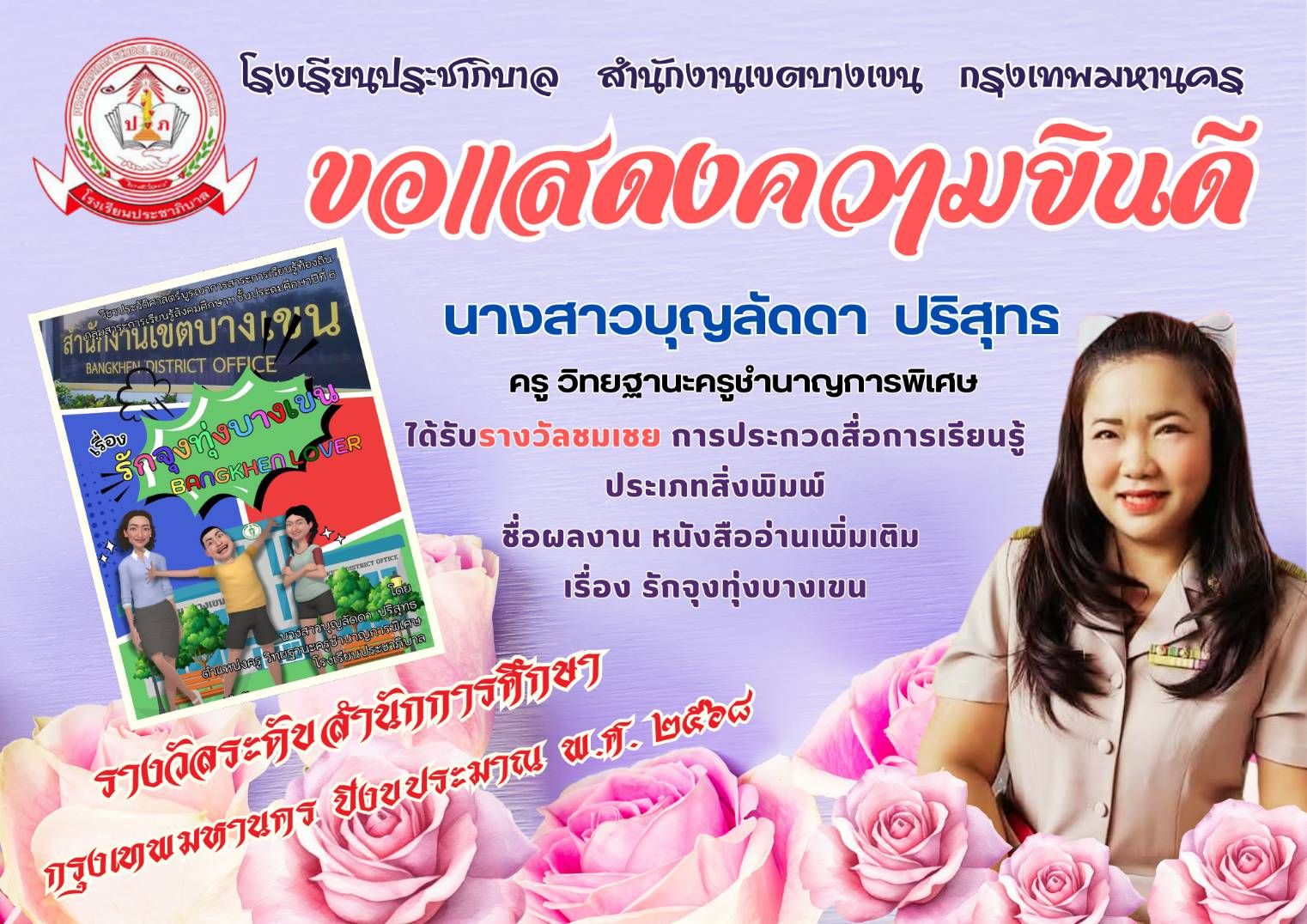 การประกวดสื่อการเรียนรู้ ประเภทสิ่งพิมพ์ ชื่อผลงาน หนังสืออ่านเพิ่มเติม เรื่อง รักจุงทุ่งบางเขน
